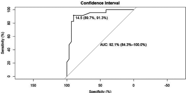 Figure 3: Roc curve of the Bun/creatinine ratio for the diagnosis of acute interstitial nephritis