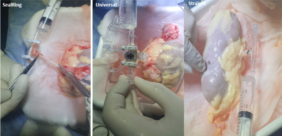 Se utilizaron los tres modelos de cánulas: En siete casos se utilizó la SealRing, en dos la Straight y en una oportunidad la Universal. En todos los casos la conexión a la máquina fue satisfactoria.