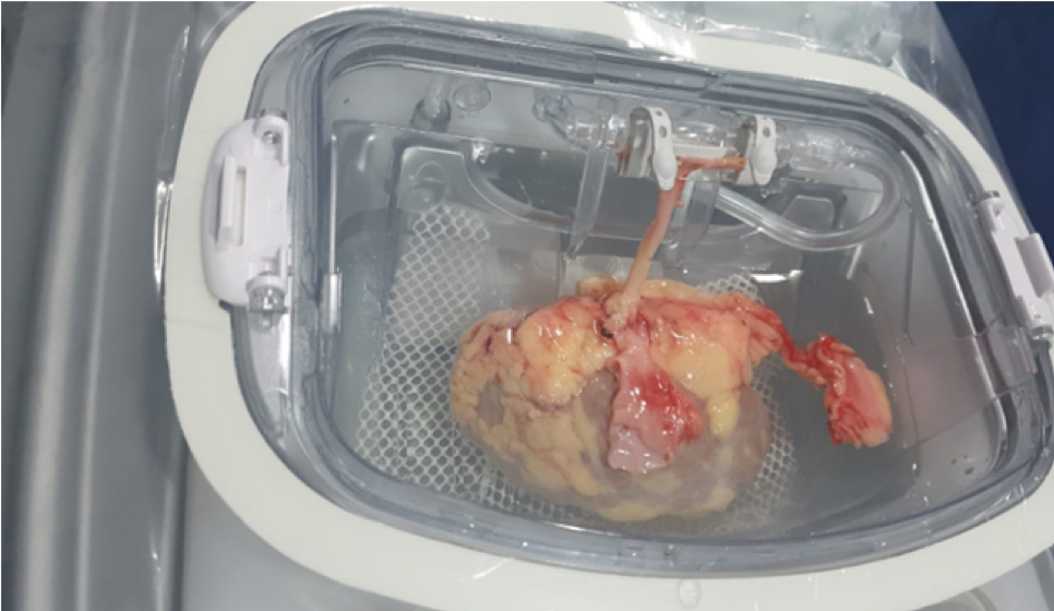 Una vez canulado, el órgano se encuentra listo para su conexión a la máquina de perfusión (Figura 3).