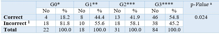Meanwhile, in Table 4 we observe the level of clinical competencies for the identification and management of CKD for each group. Through this we identified that 81.9% of G0 belonged to the category of non-competent, while in G1 only 38.9% were competent. In G2 35.5% of students managed to be competent, and finally in G3 there was 62% of students with a level above the expected competition. Only three students from G3, and one from G2, achieved an expert level.