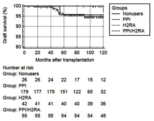 demonstrated similar 10-year graft survival rates: 95.5% for proton pump